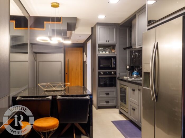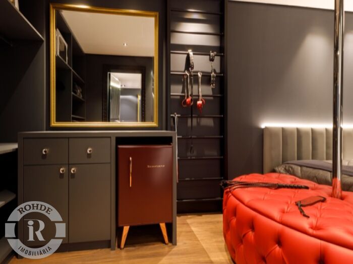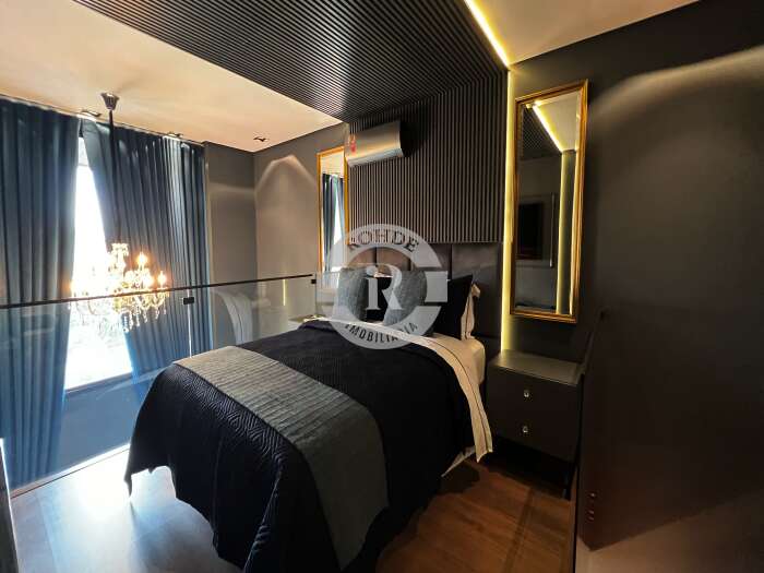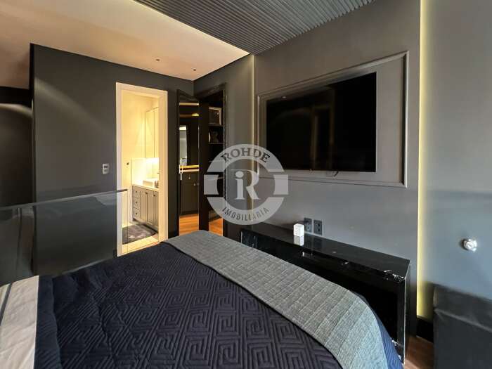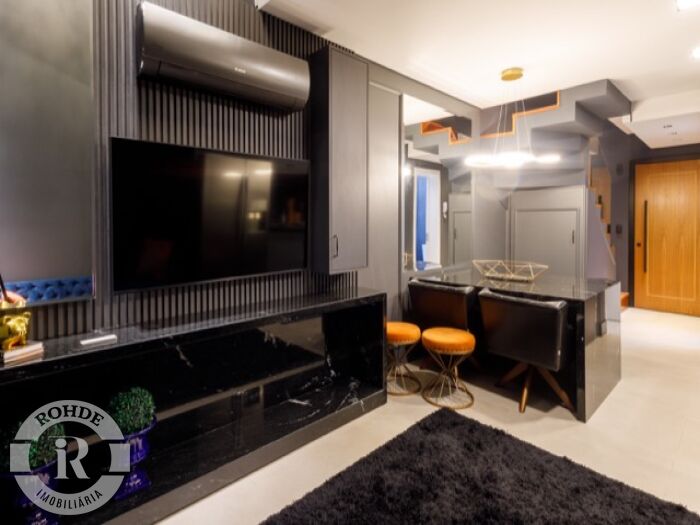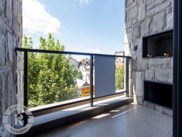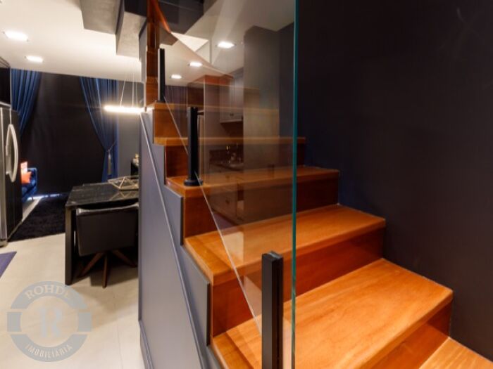 Apartamento LOFT DUPLEX mobiliado e decorado no Centro de Canela. Com 1 suíte, sala de estar com sacada, sala de jantar e cozinha americana com churrasqueira, área de serviço, banho social, garagem.