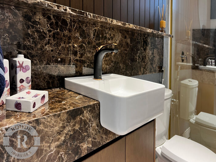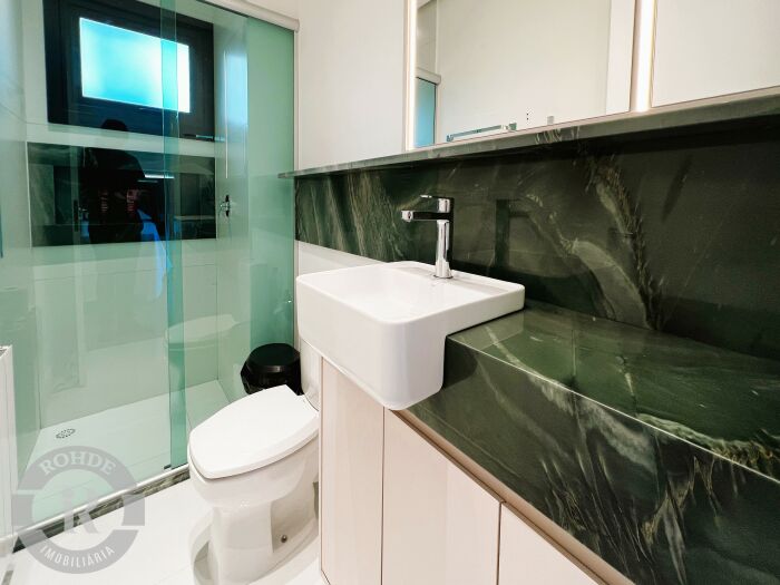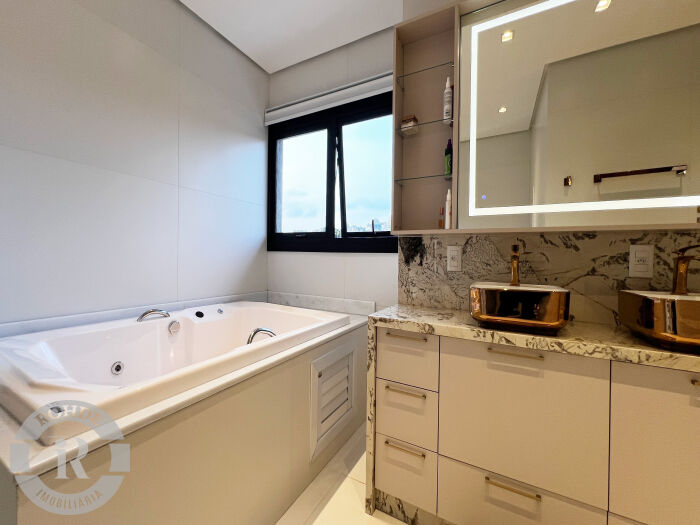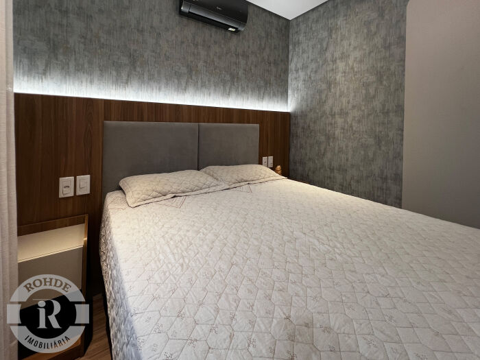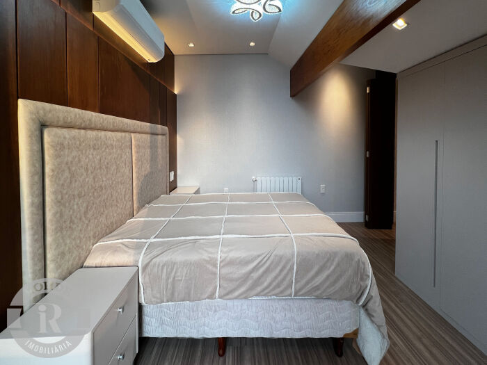 Apartamento mobiliado no Laje de Pedra, com 3 dormitórios sendo 2 suítes. Living integrado com sala de estar e jantar com lareira, cozinha americana com churrasqueira, área de serviço, lavabo e vaga dupla de garagem.
