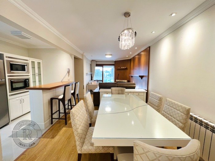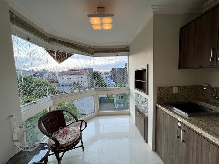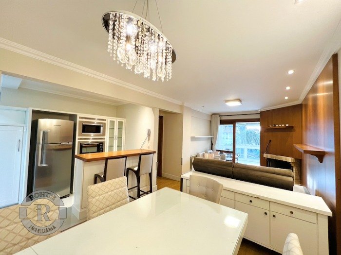 Apartamento em excepcional posição no Centro de Canela. Possui sala de estar e jantar integradas, ampla cozinha, varanda gourmet, 2 dormitórios, sendo 1 deles suíte. Imóvel com insolação da tarde, muito iluminado e ventilado! Fica completamente mobiliado conforme as fotos. 2 vagas lado a lado em garagem coberta.