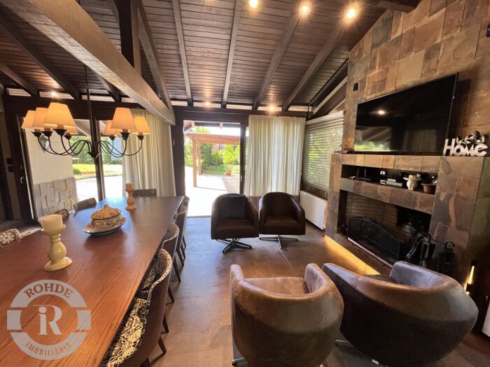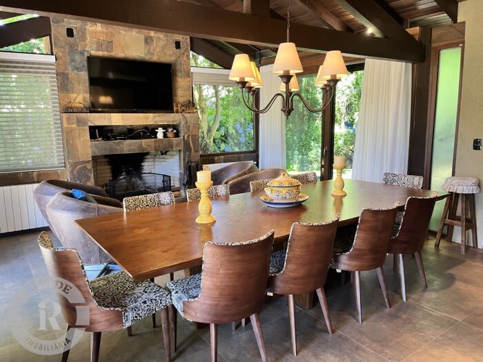 No Laje de Pedra, esta casa representa mais do que um imóvel, é um convite a viver com elegância, conforto, amplitude de jardim e exclusividade em uma das regiões mais encantadoras do Brasil. Um jardim com mais de 1.400 m2, completamente plano, com pomar, paisagismo completo defronte para uma linda área verde do Laje de Pedra, observado araucárias, pássaros, enfim observar lindo cenários todos os dias pelas janelas desta acolhedora e requintada casa. Uma verdadeira conexão com a natureza. Uma casa equipada e mobiliada de decoração sofisticada e todos os detalhes. São 12 ambientes que fluem com harmonia. Destaque para a charmosa sala de jantar com lareira, perfeita para noites aconchegantes, e o elegante estar com poltronas Charles Eames, também com lareira, um verdadeiro convite para contemplar as manhãs frias da serra ao som do silêncio. A residência é totalmente climatizada, garantindo conforto térmico em qualquer estação do ano. Os ambientes foram planejados para oferecer funcionalidade sem abrir mão da estética e da serenidade proporcionada pela natureza ao redor.