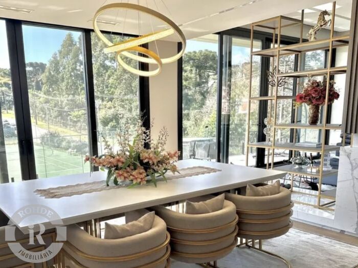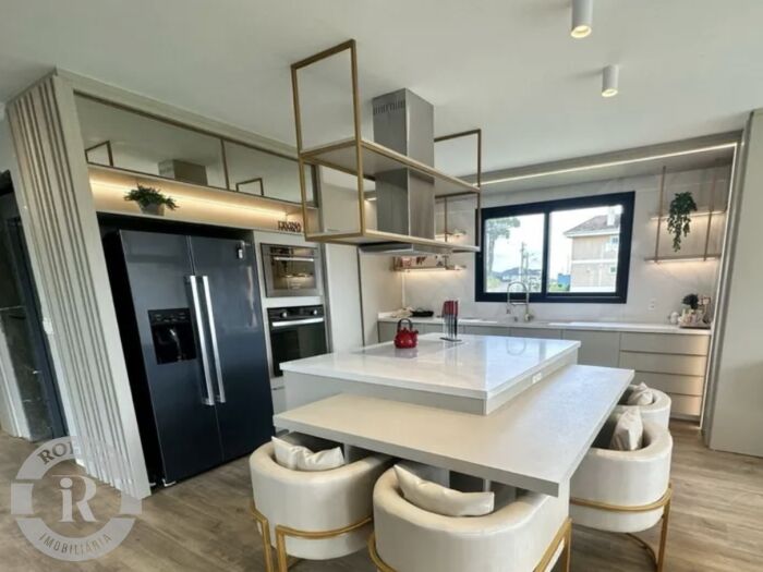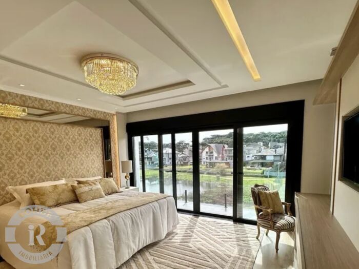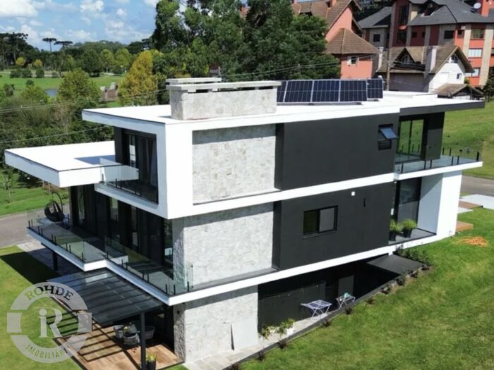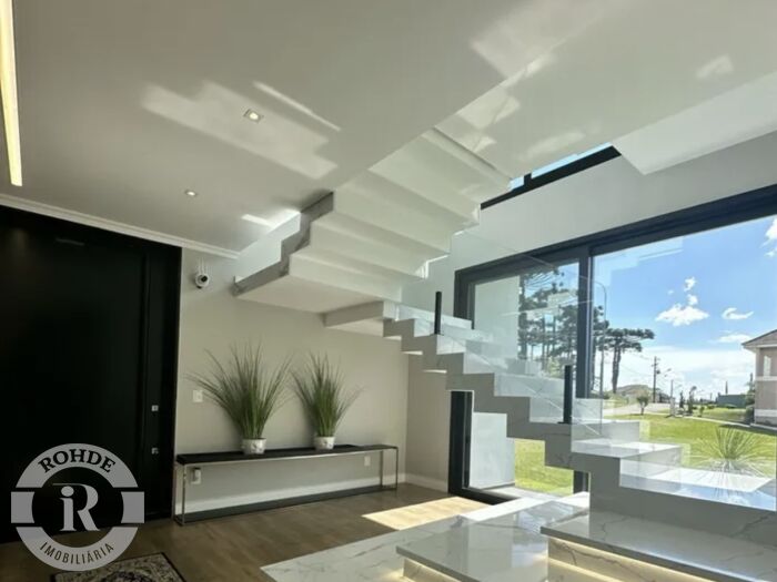 Casa mobiliada e decorada à venda no Altos Pinheiros, em Canela. A casa fica localizada em um belo terreno de esquina, com vista para o lago, possui 3 andares, elevador, 3 suítes sendo duas com closet, escritório, área gourmet, dois lavabos, depósito e com 4 vagas de garagem. Com placas solares, mármores brancos em toda escadaria/hall/lareira e cozinha, lareira a lenha, depósito interno e externo, área gourmet com parrilha e churrasqueira, varandas nos 3 andares, com vista lago, jardim com amplo espaço para piscina, jardim vertical na fachada, ar condicionados em todos ambientes. Condomínio completo com portaria 24 hs, clube social, piscina térmica, fitness center, quadras esportivas, salão de eventos com muita natureza.