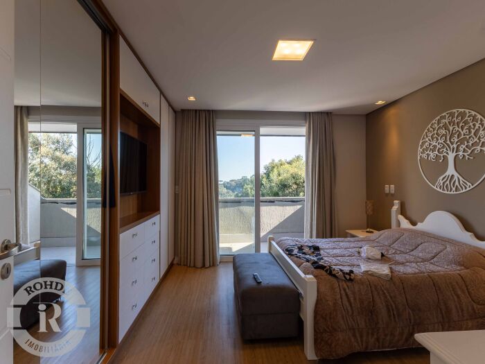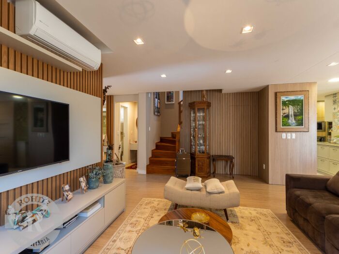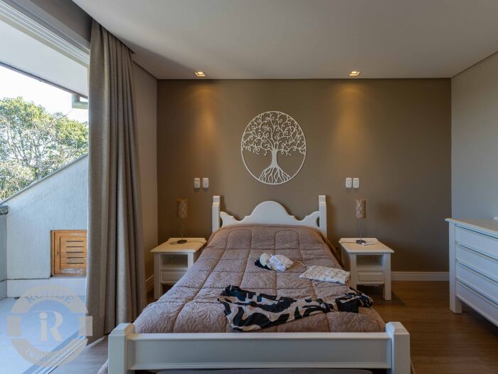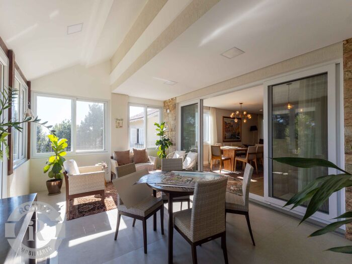 Residência mobiliada, com 3 dormitórios, sendo 1 suíte master no pavimento térreo, o imóvel conta ainda com um elegante escritório e uma aconchegante sala íntima no andar superior. O hall de entrada conduz a uma área social ampla e integrada, composta por: sala de estar e jantar, cozinha equipada e funcional, espaço gourmet com churrasqueira, área de serviço com banheiro auxiliar. Para maior conforto, a casa dispõe de calefação, splits instalados e um agradável pátio privativo, perfeito para momentos ao ar livre. Um verdadeiro refúgio que une sofisticação, privacidade e qualidade de vida no Condomínio Quinta da Serra.