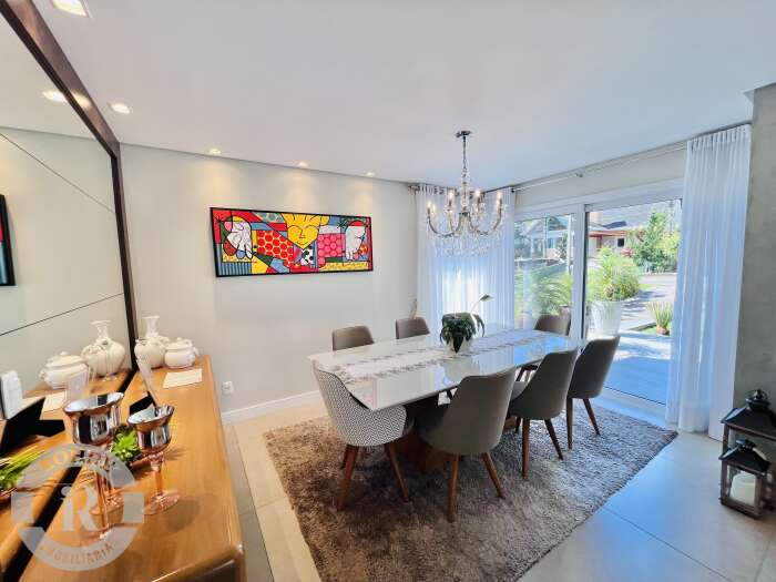 Casa mobiliada, equipada e decorada com 4 dormitórios, sendo 3 suítes, uma com closet e outra térrea. Sala de estar com lareira e acesso a varanda, sala de jantar, cozinha americana, churrasqueira, varanda, banho social, área de serviço, garagem para 2 carros e espera para elevador, usina fotovoltaica instalada. Casa com espera para calefação, automação. Residencial Altos Pinheiros é um bairro planejado com acesso monitorado e localização privilegiada. Possui portaria com segurança 24hs, piscina térmica, fitness center, salão de eventos, clube social, quadra de tênis e campos de futebol, além de lagos e trilhas.