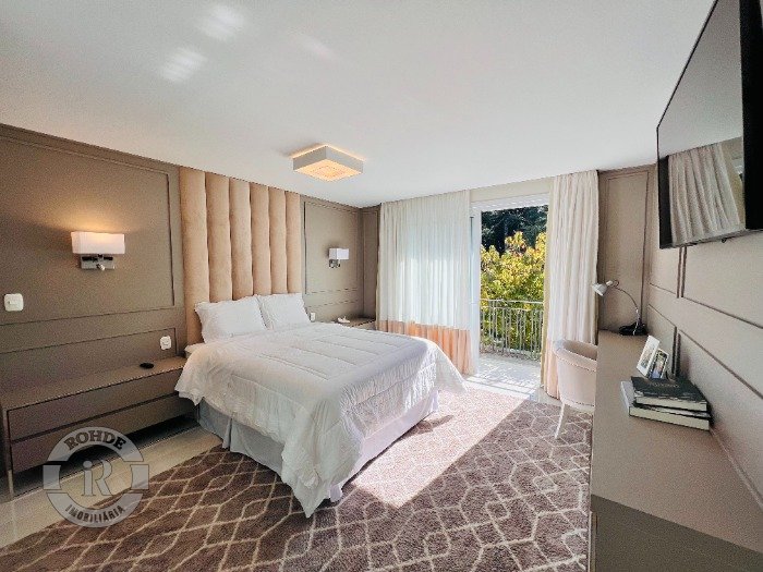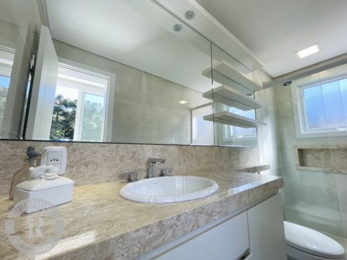 Encantadora, casa totalmente mobiliada e equipada no Condomínio Laje de Pedra. Com 4 suítes, sendo uma térrea, uma máster com closet e sacada, outra suíte máster com hidro. Sala de estar com lareira e acesso direto ao deck. Sala de jantar com vista para o jardim. Cozinha americana com churrasqueira integrada aos ambientes sociais. Lavabo. Lavanderia. Pergolado para 2 vagas. Espera para splits, ar condicionado de teto, placa solar e automação. Piso aquecido em toda casa. Persianas externas elétricas. Perfeita orientação solar. Paredes externas e internas duplas. Esquadrias em PVC com vidro duplo.