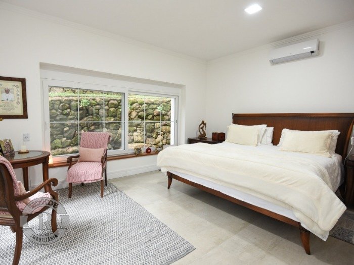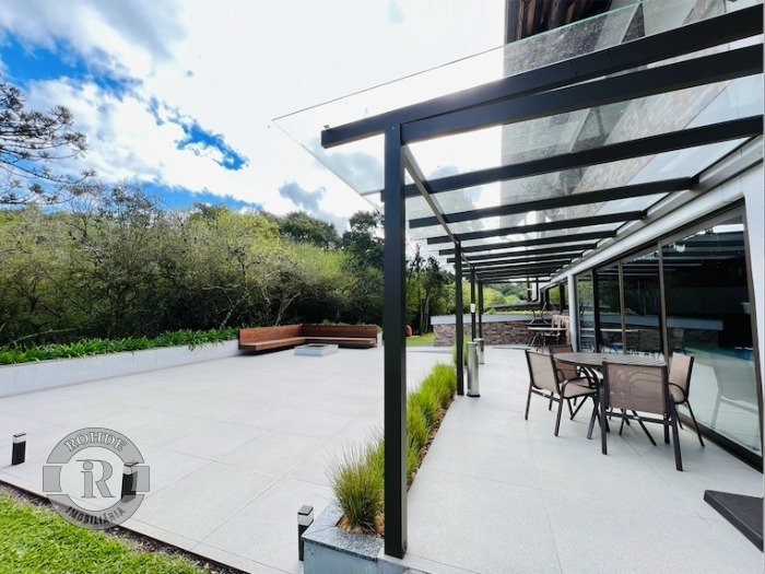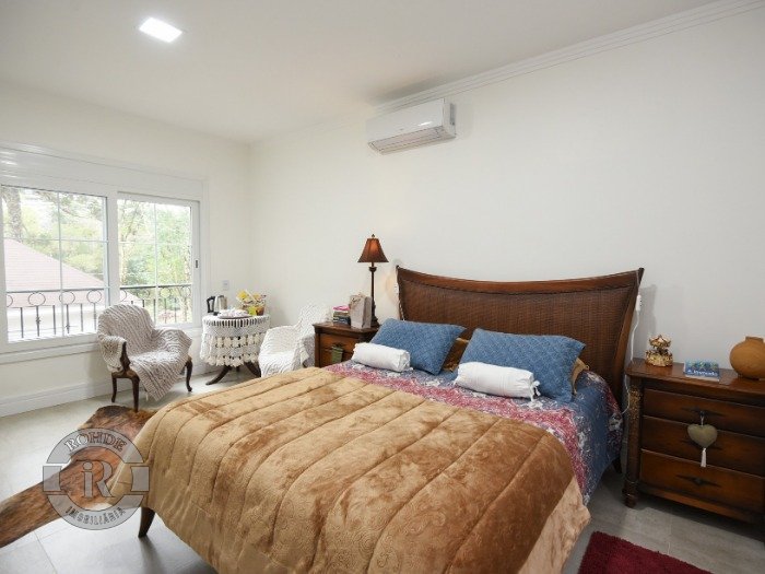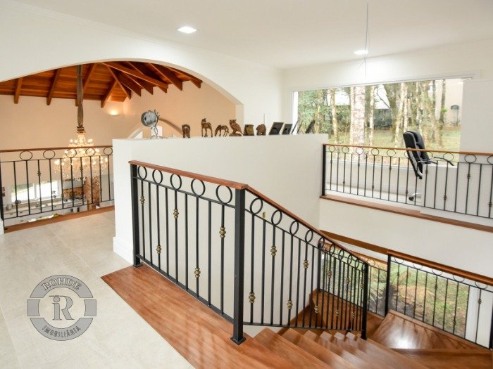 Imersa à natureza, com muita luz natural por todos os ambientes e um pé direito imponente! Esta casa com 4 dormitórios sendo 2 suítes no térreo, confortável closet e espaço para meditação, cozinha americana integrada à sala de jantar, sala de estar com lareira, jardim de inverno, lavabo, dispensa, garagem fechada, banho social, energia fotovoltaica devolvendo à rede a energia não utilizada, calefação Broilo e ar condicionado Fujitisu invertes em todos os ambientes, expressa todo conforto envolvida a belos jardins e muita paz. O Pinheiro Grosso oferece uma infraestrutura completa com piscina coberta e aquecida, sauna, academia, salão de festas, espaço gourmet, sala de jogos, brinquedoteca, quadra poliesportiva, quadra de tênis, quadra de beach tennis, campo de futebol, playground.