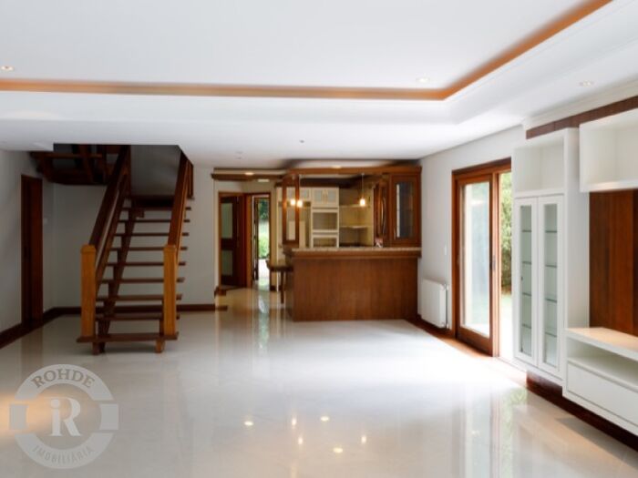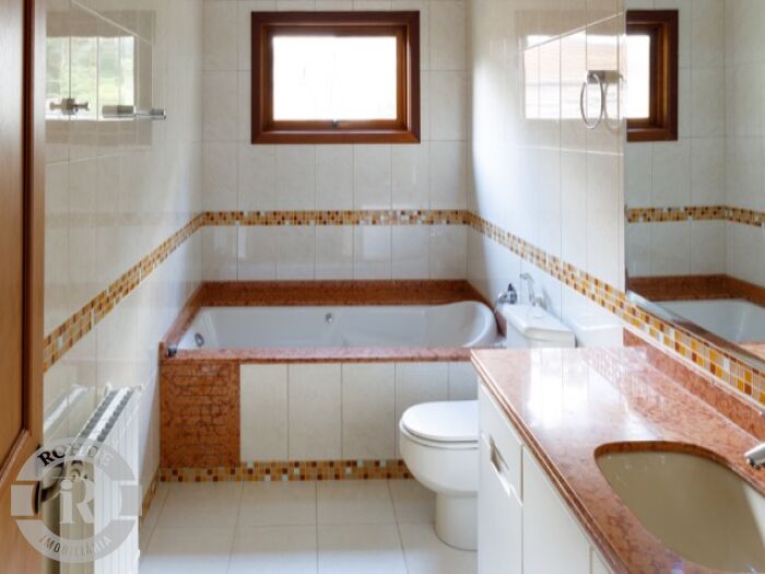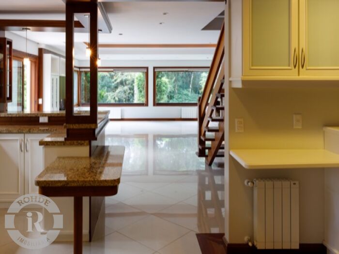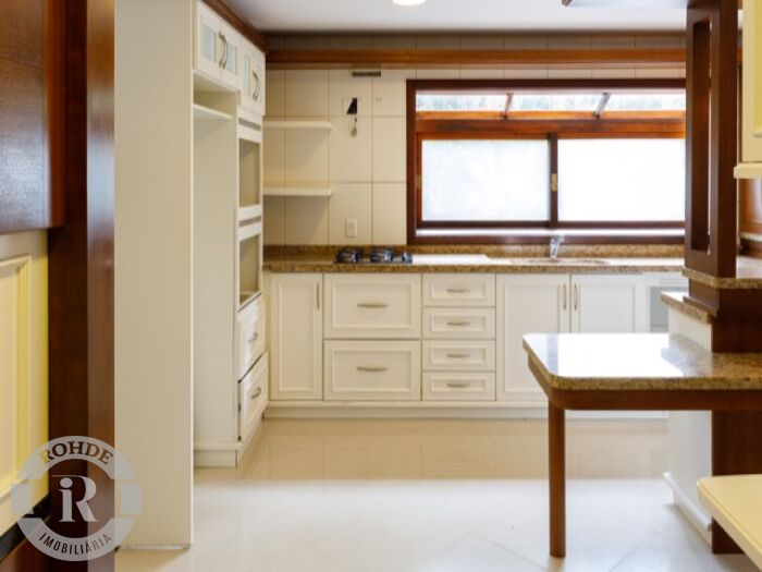 Casa semi mobiliada com 4 dormitórios, sendo 2 suítes térreas. Sala de estar e jantar com lareira, cozinha americana com churrasqueira, lavabo, lavanderia, home office, dependência de empregada completa, estar íntimo com sacada, banho social. Apartamento para hóspedes com 1 dormitório, sala de estar com acesso ao terraço, cozinha, banho social.