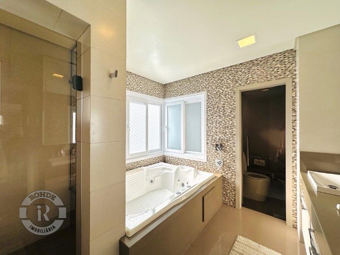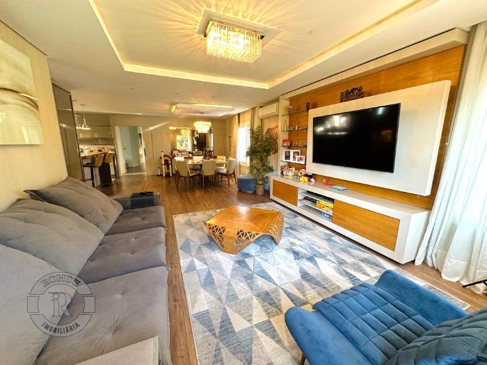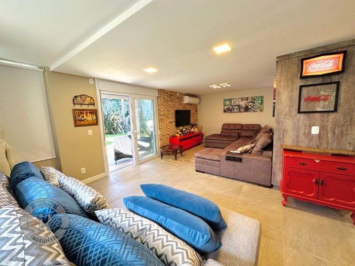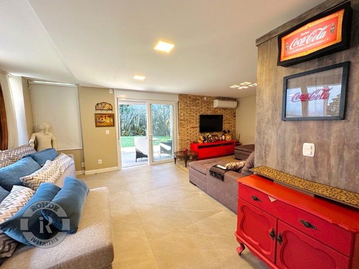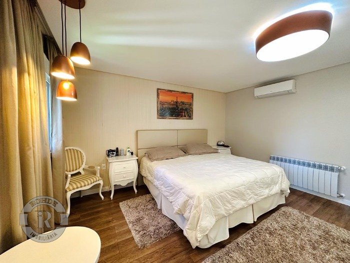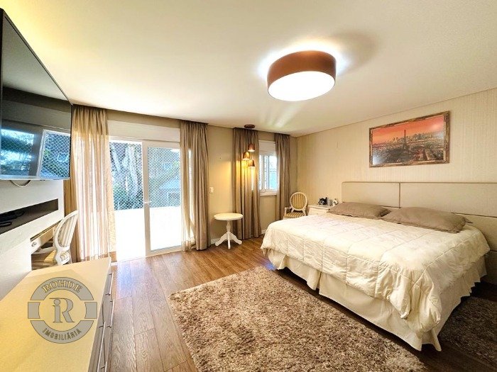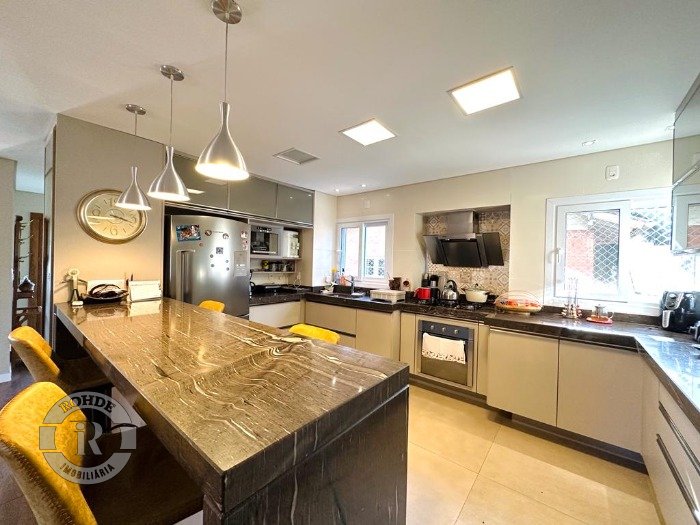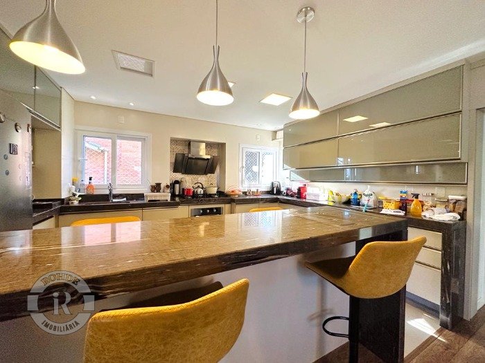 Linda casa no Condomínio Quinta da Serra. Com 3 pavimentos: No térreo 3 suítes, sendo 1 master com closet e hidro, sala de estar e jantar integradas, cozinha com bancada, lavabo e despensa. No subsolo 1 suíte, espaço gourmet com churrasqueira, sala de jogos, academia, banheiro social, área de serviço e depósito para caldeira. No subtelhado 1 dormitório, escritório, depósito e banheiro social. Água quente em todas as torneiras, boiler elétrico abastecido por sistema de aquecimento solar, caldeira à diesel, calefação, splits e espera para lareira.