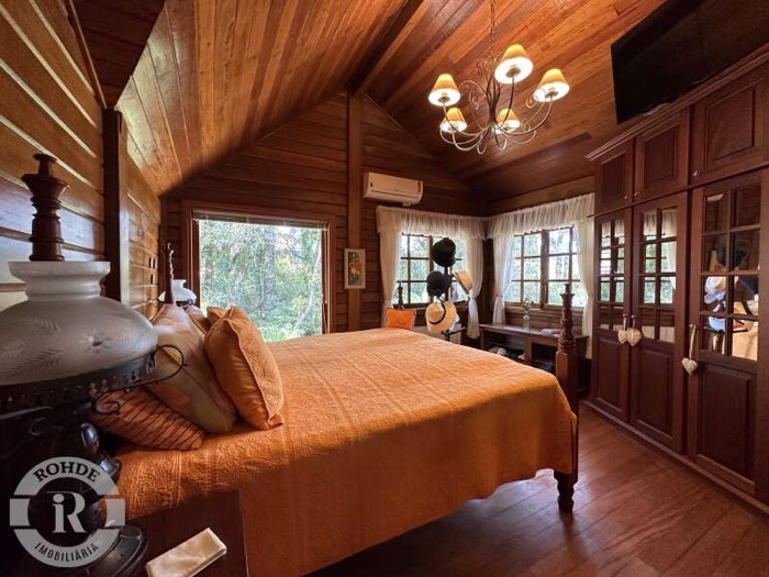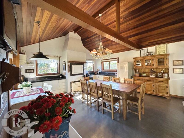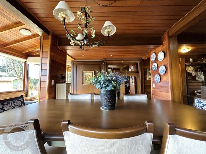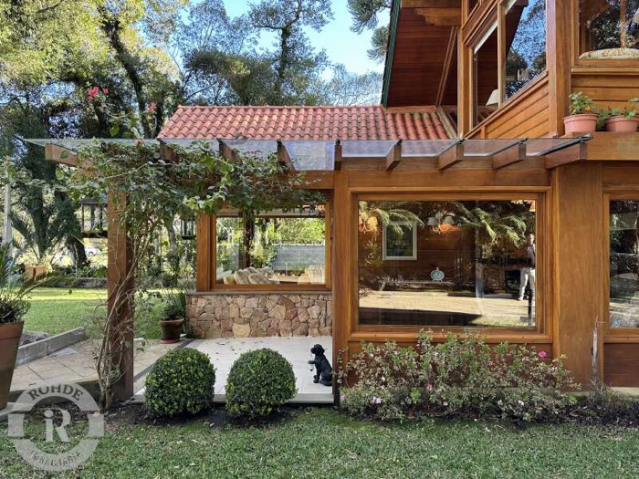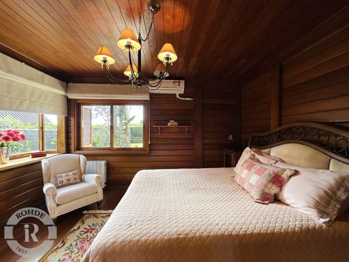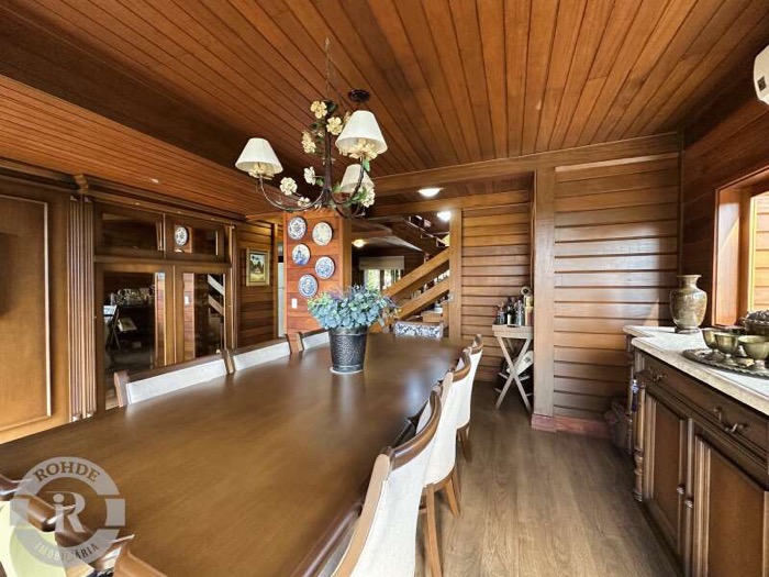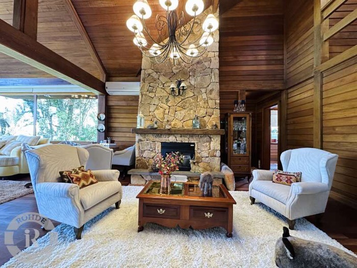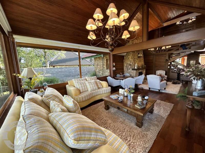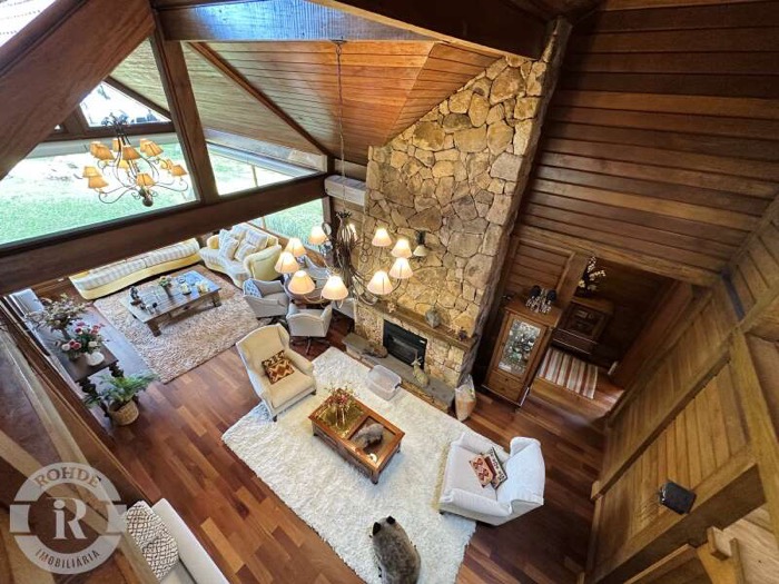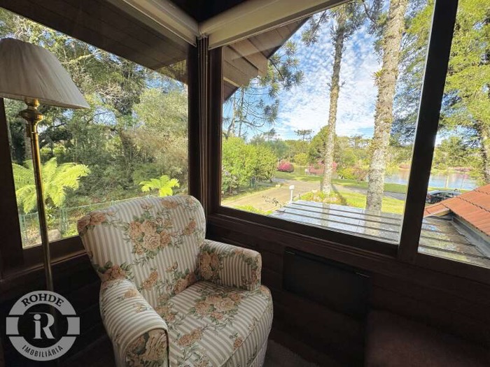 Casa mobiliada e equipada, no Laje de Pedra, com a vista mais charmosa e encantadora, com 4 dormitórios sendo 2 suítes (1 suíte térrea), hall de entrada, living amplo com pé direito duplo em 2 ambientes com lareira, cozinha, lavabo, sala íntima no mezanino com sacada, banho social, salão de festas, lavanderia, calefação instalada, manutenção impecável, madeira nobre. Jardim totalmente plano com 1.250m² com 25m de frente para o lago.