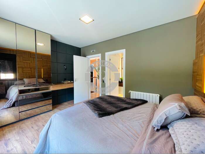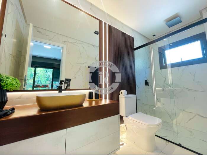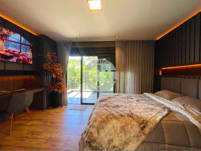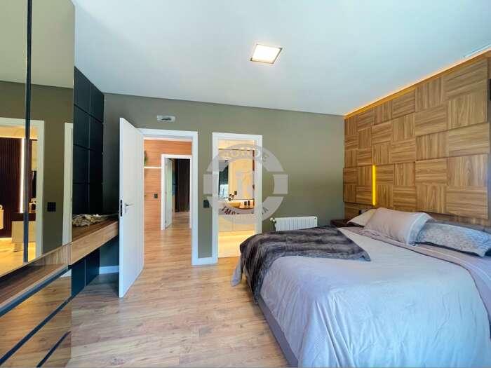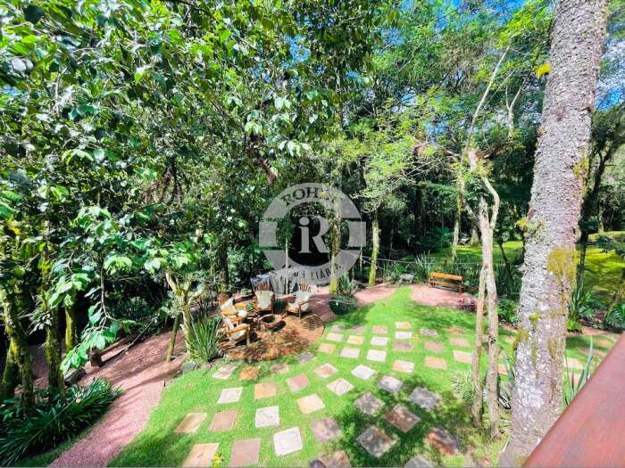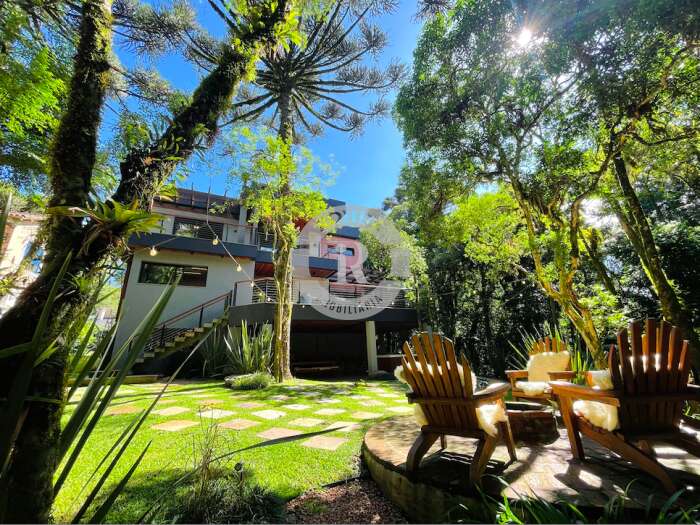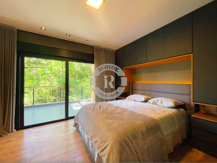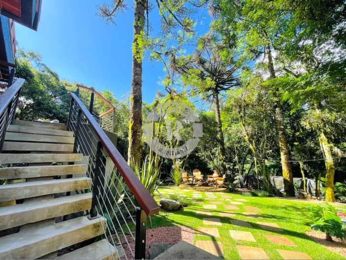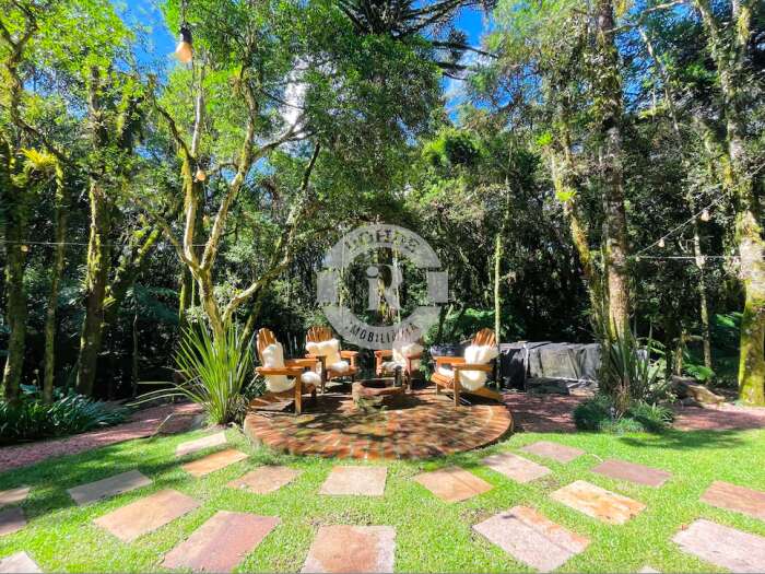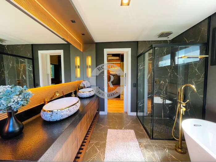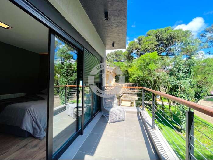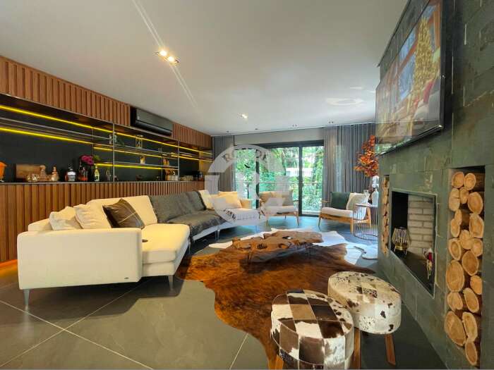 Moderna, acolhedora, mobiliada e com muito estilo. Hall imponente com de pé direito duplo, sala de estar com lareira e bar, ampla sacada com lareira, sala de jantar integrada a cozinha com churrasqueira. Com 4 suítes, sendo 1 suíte térrea e outra suíte máster com closet e charmosa banheira. Sacadas com vista para área de preservação. Adega, sala de cinema com isolamento acústico e paredes revestidas com mosaico de veludo, espuma de alta densidade e madeira grápia. Espaço externo com cozinha adicional com bar, integrado ao estar e jacuzi, adega climatizada e cervejeira. Garagem para 4 carros. Condomínio com infraestrutura completa: Portaria e segurança 24h, salão de festas, espaço gourmet, sala fitness, piscina aquecida, quadras esportivas coberta e descoberta, playgroud, trilhas e praças. Áreas de preservação permanente.