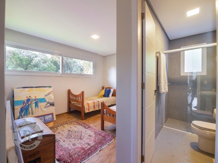 Casa com 4 dormitórios sendo 3 suítes ( sendo 1 com sacada ), sala de estar com espera para lareira, sala de jantar, cozinha americana, lavabo, banho social, lavanderia, garagem para 2 carros com churrasqueira, lindo jardim. Condomínio com muito lazer e natureza tendo 235.000 m2 de área verde. Club House com 2 belos salões de festas, espaços lúdicos, piscina aquecida. Espaço de convivência e gourmet, espaço fitness, quadra de tênis fechada, quadras poliesportivas, quadra de futebol, praça central com paisagismo, áreas com playground e trilhas. Segurança 24 horas.
