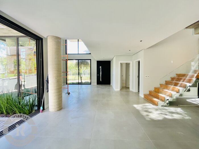 CASA BRISA. Descubra o encanto de viver em uma casa que mescla modernidade e proximidade com a natureza. Situada em uma localização privilegiada, esta residência de 350m² é a expressão de exclusividade e sofisticação. Características Principais: Espaço e Conforto: Com 4 suítes esplêndidas, sendo uma suíte master com banheira de imersão e sacada particular, e mais uma suíte no térreo. Essa configuração garante conforto e praticidade, adaptando-se a todas as faixas etárias. Ambientes Sociais: A casa oferece uma sala de estar com lareira aconchegante, uma sala de jantar elegante e uma sala íntima perfeita para pequenas reuniões, criando um ambiente acolhedor para receber amigos e familiares. Cozinha Gourmet: Integrada com churrasqueira e espera para uma bancada americana, a cozinha está preparada para despertar o chef que reside em você e proporcionar experiências gastronômicas memoráveis. Estrutura e Comodidades: Tecnologia de Conforto: Contando com piso aquecido nos ambientes sociais e sistemas de água quente e fria, a casa assegura um ambiente acolhedor durante todas as estações do ano. Espaços Funcionais: Despensa, área de serviço, casa de máquinas, e um home office que oferece um ambiente calmo e estratégico para produtividade máxima. Área Externa e Segurança: Rooftop: Possibilidade de mais um ambiente podendo colocar uma jacuzzi para momentos relaxantes, além de um espaço do fogo, ideal para noites ao ar livre inesquecíveis. Garantem espaçosa para 2 vagas cobertas. Condomínio com segurança 24 horas, saláo de festas, piscina aquecida, fitness, quadras. Este é o lar ideal para quem valoriza o equilíbrio entre sofisticação, conforto e a beleza natural de Canela. Não perca a oportunidade de tornar esta casa excepcional o seu novo lar.