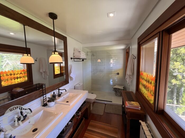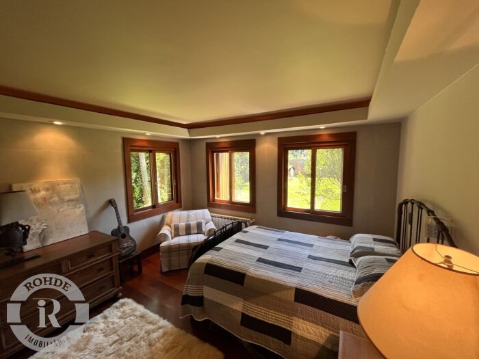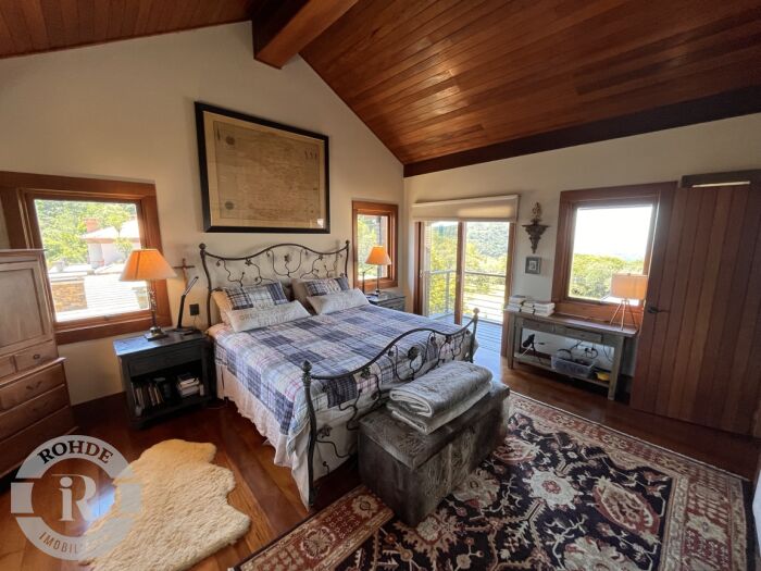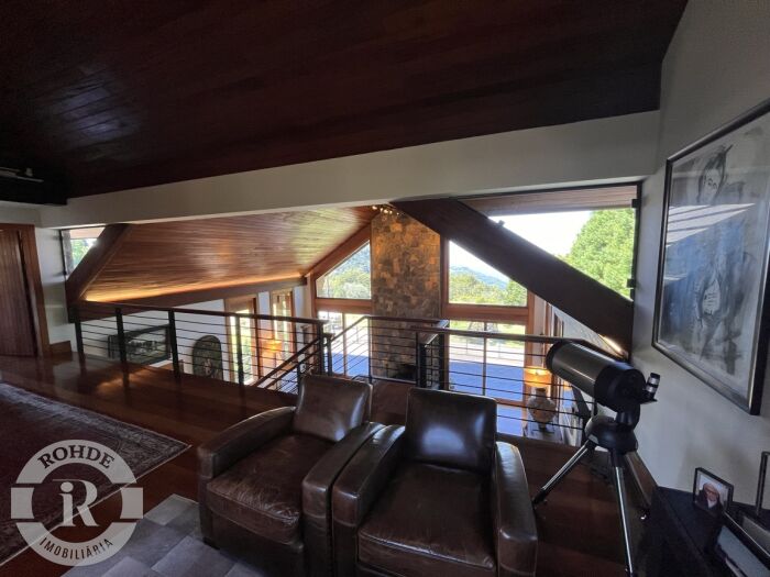 Uma casa de arquitetura disruptiva, marcada por linhas imponentes, uso expressivo de pedras naturais, madeiras nobres e uma implantação que valoriza, em cada detalhe, a vista deslumbrante para o famoso Vale do Quilombo. Aqui, a lógica convencional se inverte para privilegiar a experiência. Todo o social está no segundo piso, exatamente onde o horizonte se abre de maneira cinematográfica. Living, jantar, cozinha gourmet interna, espaço gourmet externo e um terraço amplo formam um único gesto arquitetônico — fluido, integrado e banhado por luz — projetado para receber, contemplar, celebrar. A vista é protagonista: presente em cada ambiente, acompanhando cada passo. No terceiro piso, a casa revela sua verdadeira alma-refúgio: uma suíte master acolhedora, com mezanino e janelas voltadas para as montanhas do Vale do Quilombo. É um santuário privado, onde amanhecer e entardecer se tornam rituais diários de contemplação. A atmosfera combina elegância, silêncio e uma sensação rara de altitude emocional e visual.Já o primeiro piso apresenta um hall de entrada imponente, que antecipa a personalidade da casa, acompanhado por três suítes confortáveis e um living íntimo que complementa a distribuição perfeita para receber família e amigos com autonomia e privacidade. Mobiliada com peças cheias de história e equipada com rigor, a casa entrega personalidade e alma. Cada textura — seja de pedra, seja de madeira — traduz a intenção arquitetônica de unir robusteza e acolhimento, natureza e design, estrutura e poesia.