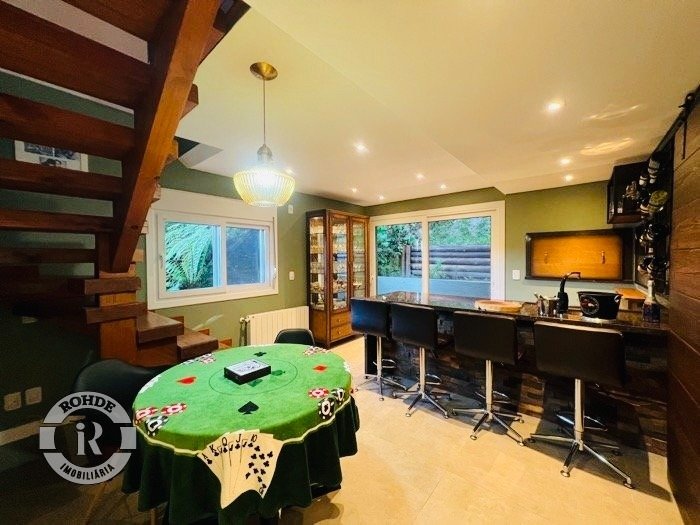 Casa totalmente mobiliada e decorada com 5 dormitórios, sendo 1 suíte com closet, living em 2 ambientes com lareira, sala íntima, espaço gourmet, lavabo, 3 banheiros, 2 depósitos, área de serviço, pátio, garagem para 2 veículos, estúdio com cozinha. Piso aquecido nos banheiros. Calefação e climatização em todos os ambientes. Magnífica vista para o lago do condomínio. O Quinta da Serra está localizado no Centro da cidade de Canela/RS. Um verdadeiro refúgio que presa pelo harmonioso contato com a natureza. Nele você encontra um belíssimo lago, envolto com trilhas que ligam aos espaços de lazer como: quadra poliesportiva, quadra de tênis, cancha de paddle, cancha de bocha, campo de futebol, salão de festa, espaço gourmet, parque, espaço holístico, horta comunitária, academia ao ar livre e também uma fazendinha com ovelhas e patos. Portaria e segurança 24hs.