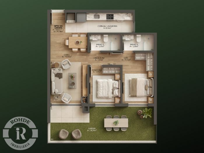 Apartamento de 2 dormitórios sendo 1 suíte. Com Churrasqueira e Garden de contemplação. Residencial Aflorea, Incorporadora Vougan. 1 vaga de estacionamento coberto - Esquadrias de PV vidros duplos - Esquadrias de piso teto na sala - Sistema de aquecimento de água central com placas solares - Espera para Split nos ambientes - Reaproveitamento da água - Forro de gesso em todo apartamento - Piso vinílico nas áreas sociais e íntimas - Porcelanato nas áreas úmidas. O Aflorea esta inserido no icônico bairro Bavária. Um bairro tranquilo e nobre. Bairro plano, muito arborizado rodeado de belas residências e guarnecido por excelentes mercados. Quase um bairro privado dentro de Gramado. E para quem desejar ir almoçar ou jantar nos espetaculares restaurantes que a gastronomia de Gramado oferece, sua localização privilegia o acesso e o tranquilo deslocamento. O residencial conta com infraestrutura sensorial que instiga o bem viver em equilíbrio - Wellness natural.