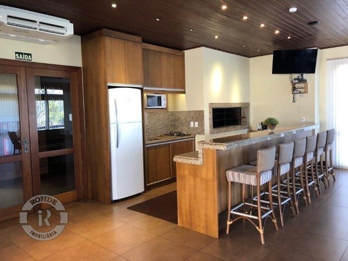 Apartamento de 1 dormitório. Sala de estar e jantar com lareira e sacada integrada. Cozinha americana com churrasqueira. Área de serviço. Banho social. 1 vaga de garagem. Elevador. Esperas para calefação. Água quente e splits. Empreendimento composto por 4 blocos residenciais, salão de festas, infra de lazer mobiliada, espaço gourmet com churrasqueira e estar social com lareira, espaço fitness, piscina térmica, porteiro eletrônico, esquadrias em PVC, gás individual, hidrômetro individual, jardim com tratamento paisagístico, sistema de captação de água.