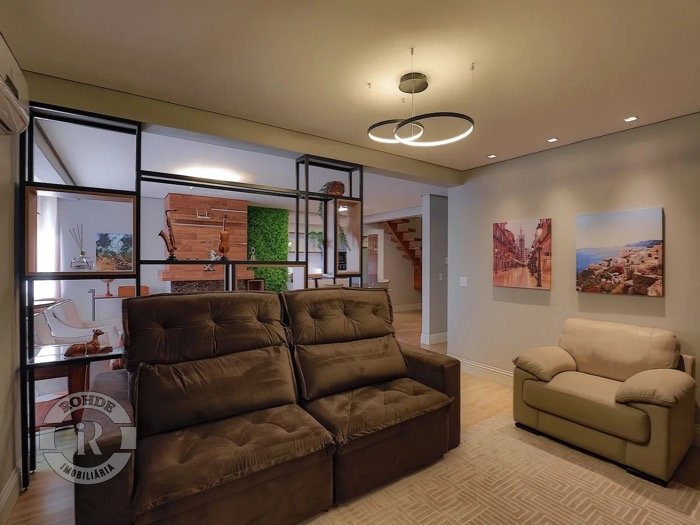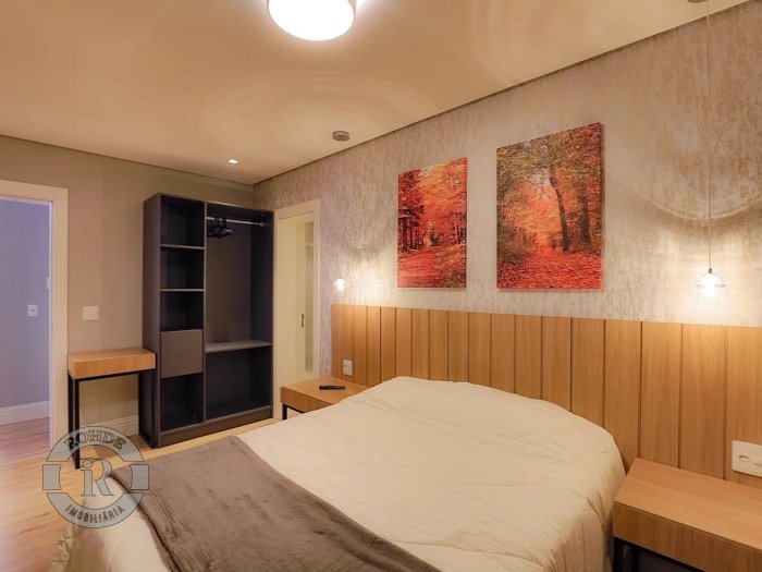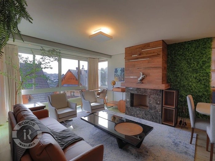 Apartamento cobertura duplex decorada com 4 dormitórios, sendo 3 suítes. Sala de estar e jantar com lareira e sacada integrada. Cozinha americana com churrasqueira. Terraço com churrasqueira. Estar íntimo. Lavabo. Lavanderia. Garagem. Elevador.