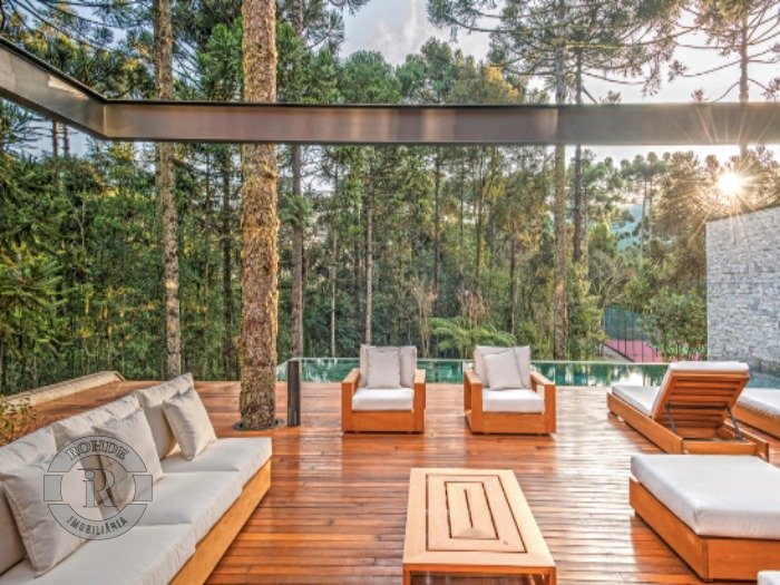 Casa mobiliada e decorada com estilo contemporâneo, tendo 4 amplas suítes sendo uma suíte master com closet e charmosa banheira e 1 suíte térrea, mais dependência de empregada. Amplo living integrando a sala de estar e jantar ao deck com espaço gourmet tendo churrasqueira parrilla, forno de pizza e lareira. Lavabo. Piscina com borda infinita, fogo de chão. Espaço para pub. Cozinha integrada com bancada. Copa com lavanderia. Ar condicionado k7. Piso aquecido em toda casa. Garagem fechada para 2 carros. Fundos e lateral para área verde. O Aspen Mountain possui infraestrutura completa, com restaurante, quadras de tênis, piscina externa e interna, espaço gourmet e fitness.