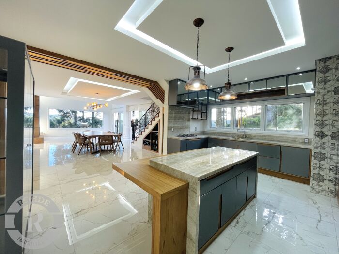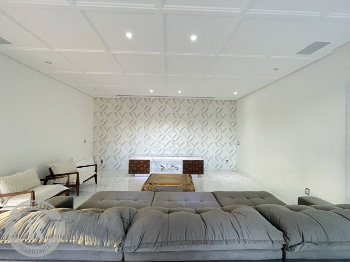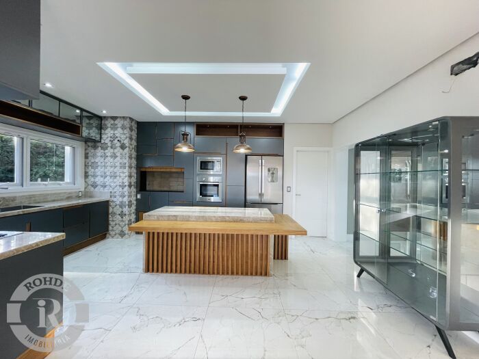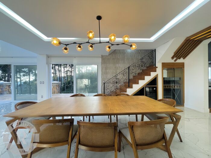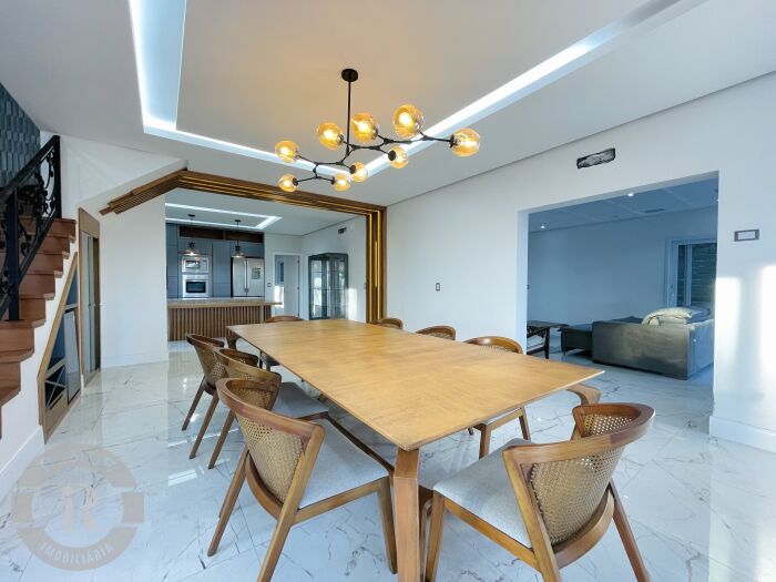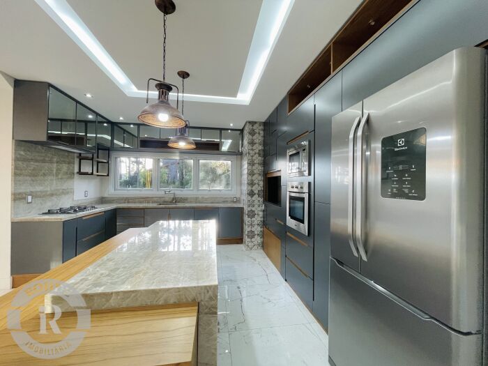 Casa semi mobiliada com 4 suítes na Condomínio Aspen Mountain. Pavimento térreo: Hall de entrada, living com vista para a sala principal, lavabo, 1 suíte. Pavimento social: sala de estar e jantar com pé direito alto e ampla sacada com linda vista, cozinha mobiliada integrada, sala de cinema, lavanderia. Pavimento íntimo: 3 suítes.