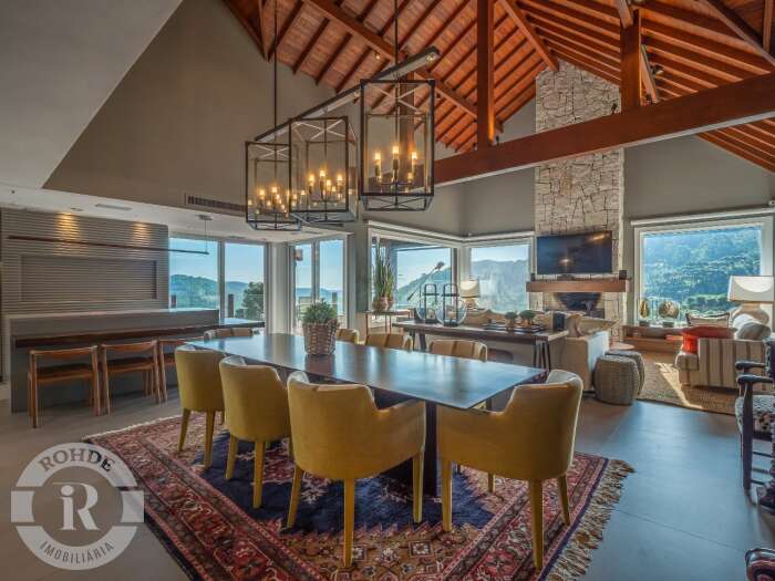 Com uma vista única e muito luxo, esta casa se destaca no Aspen Mountain. Andar térreo composto por living com lareira integrado a sala de jantar, cozinha, churrasqueira, deck amplo com vista, lavabo, duas suítes térreas e elevador. No andar superior, duas amplas suítes, uma com banheira e suíte principal com dois banheiros e dois closets. No primeiro subsolo, amplo espaço para projetar uma adega, uma suíte para visitas, jacuzzi, sauna, espaço kids e banho social. No segundo subsolo, sala de cinema, mesa de sinuca, espaço gourmet com parrilha, banheiro social, depósito e saída para o jardim com piscina. A casa conta com piso aquecido, elevador para todos os níveis, placas solares, garagem fechada para dois carros.